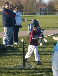 It finally happend, Our FIRST T-ball game of the season. Really we should be on game 2, but our first game got rained out. Mommy says that's part of spring sports. Kylie and I were so excited, here are some Highlights from the game....Here's me Up to Bat.